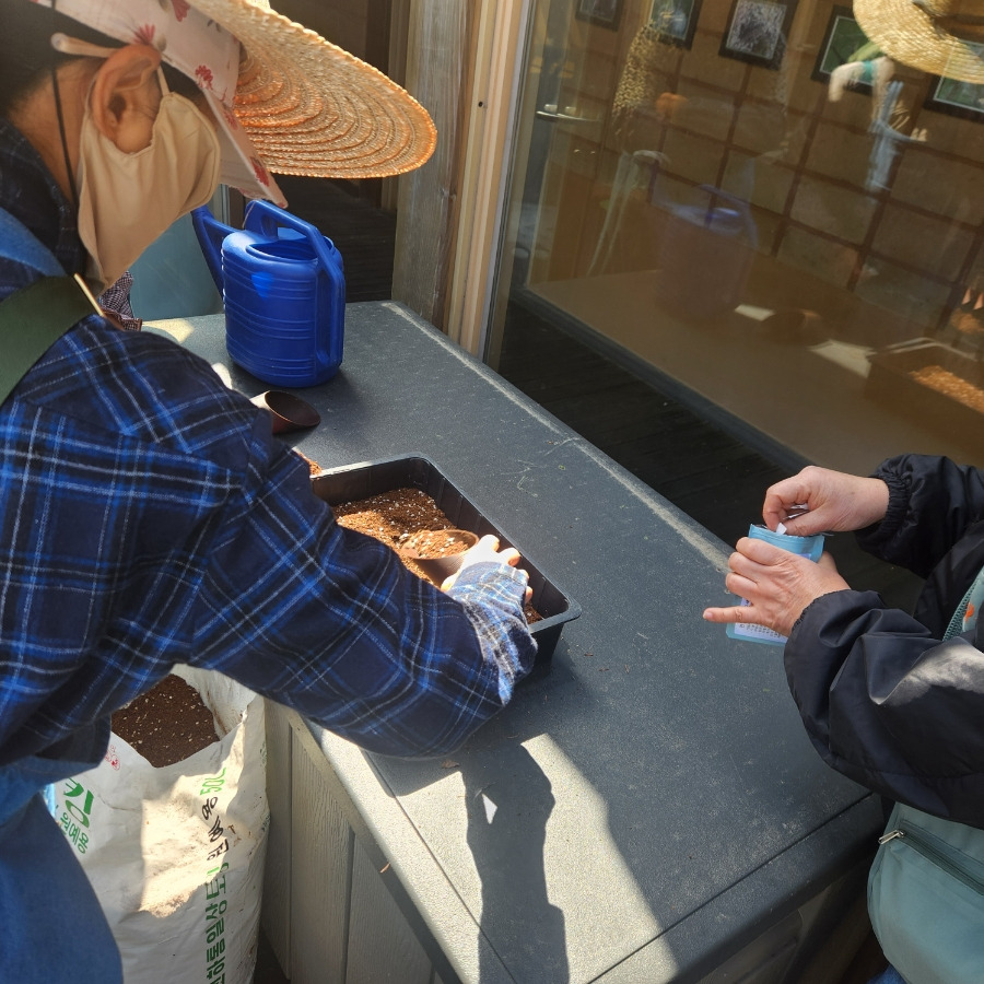 오늘 수업 시간에 천일홍 씨앗을 뿌렸어요.