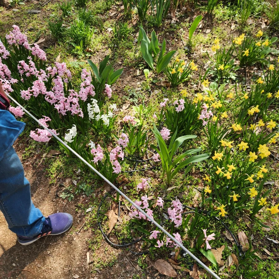 이 자리에서 월동한 히아신스도 예쁘게 피었습니다. 집에서 가꾼 히아신스와는 쬐금 모양이 다르게 피었어요.