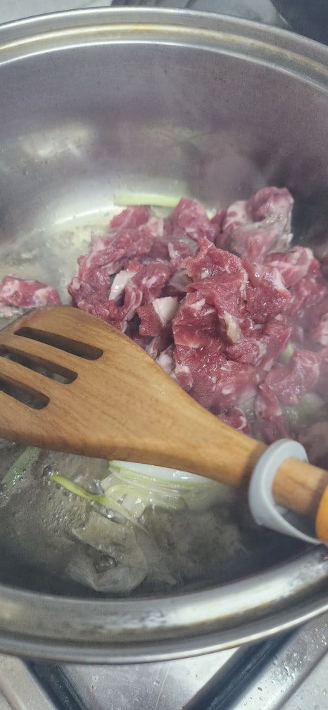 - 핏기를 제거한 소고기를 넣고 달달 볶아 줍니다.