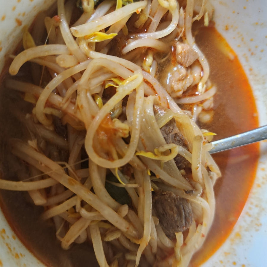 촉촉한 소고기 숙주 육개장이 완성되었어요.