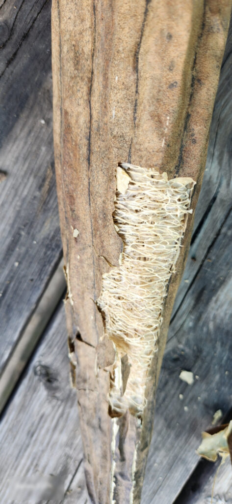 손으로 잡아당기니 껍질이 벗겨집니다. 툭툭~ 수세미를 치면 기분 나쁘겠지만 바스락하며 껍질이 떨어져요. ㅎㅎ