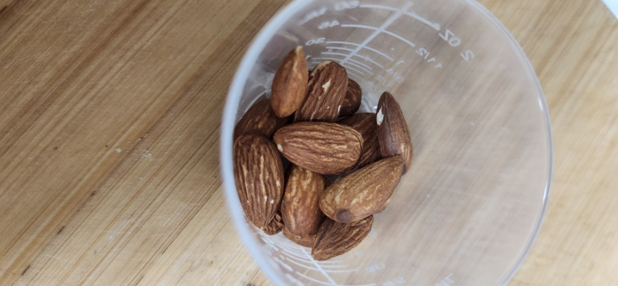 1컵 반의 병아리콩에 아몬드 반컵을 포함합니다.