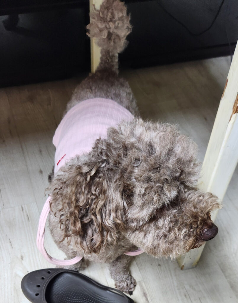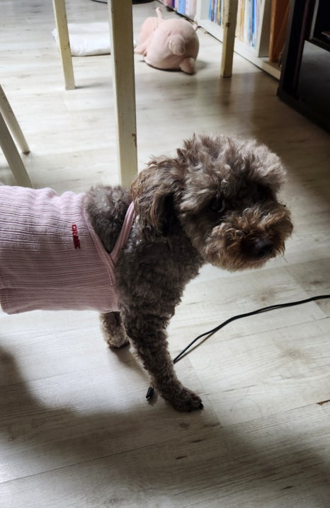 언더붑으로 강아지 옷을 간단하게 만들었어요.