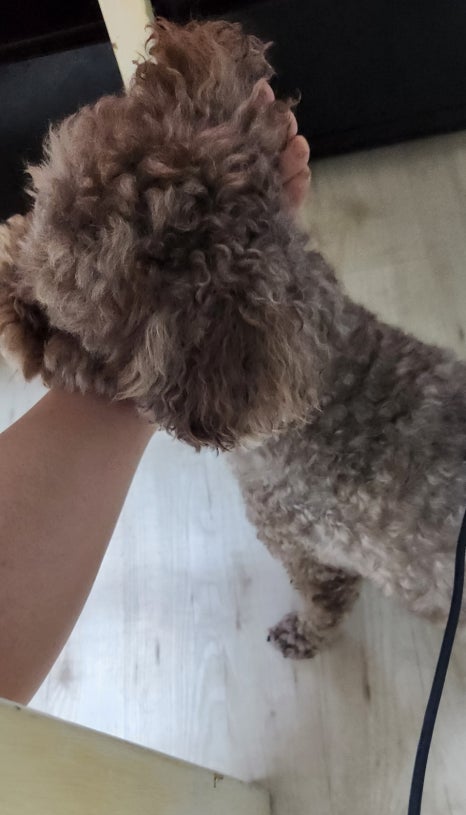 아침부터 내리는 천둥 번개에 놀라서엄마 무릎 위로 올라오고 싶었으나 거절을 당하고 이리저리 헤매이다~엄마 다리로 왔습니다.
