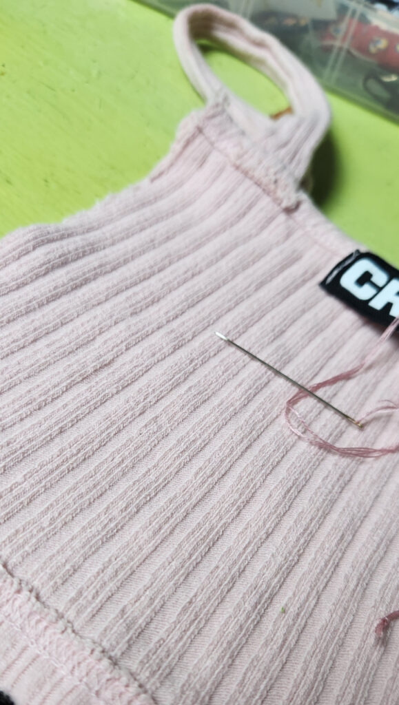 어깨 끈을 그대로 바느질~ 아주 간단하게 옷을 만들었습니다.