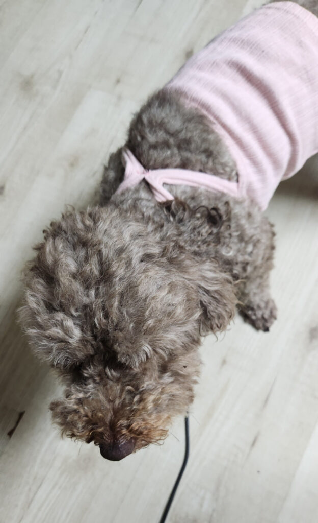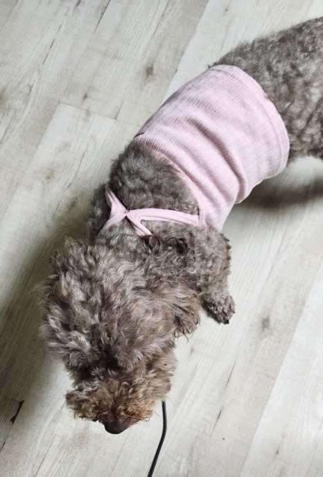 언더붑으로 강아지 옷을 간단하게 만들었어요.