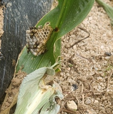 세상에 벌집이 옥수수 잎에 있는 줄은 몰랐어요.