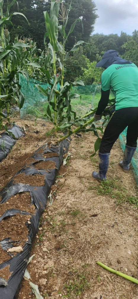 시간차를 두고 심어서 수확의 시기를 다르게 할 수 있어 좋아요. 내년에도 옥수수를 심으시는 분들~ 꼭 나눠서 옥수수를 심으세요.