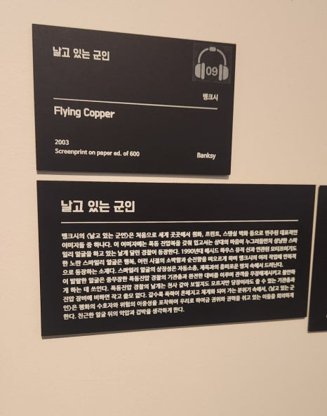 뱅크시 전시회도 오디오 가이드가 있어요. H.Point 앱을 통해 들을 수 있는데 2000원의 비용이 발생합니다.이어폰 챙기시고요. ^^