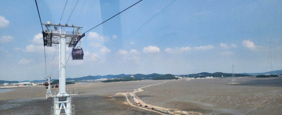 탄도항과 전곡항의 서해랑 케이블카를 여행합니다.