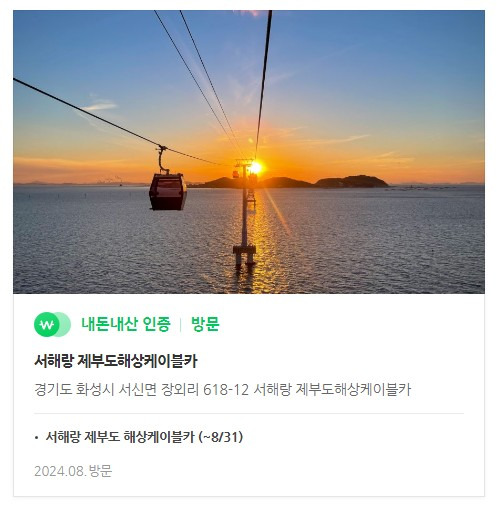요렇게 반려 인과 네이버 예매로 구매했어요. 전곡항에서 제부도로 향하는 서해랑 케이블카 왕복으로 구매했어요.