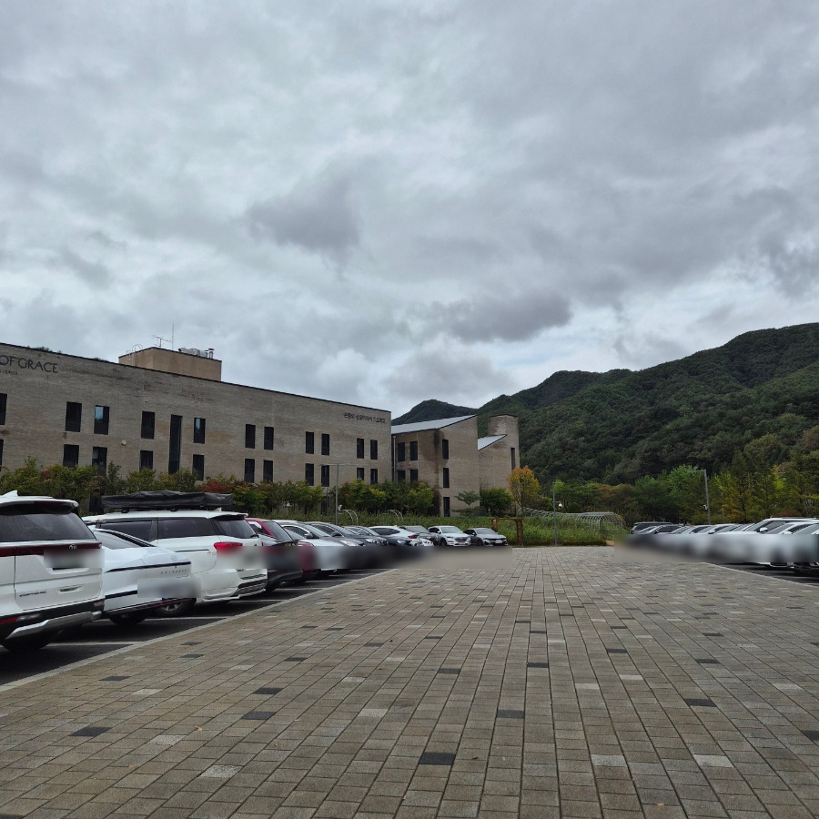 성모 마리아 기도학교의 앞 주차장의 모습이에요.
