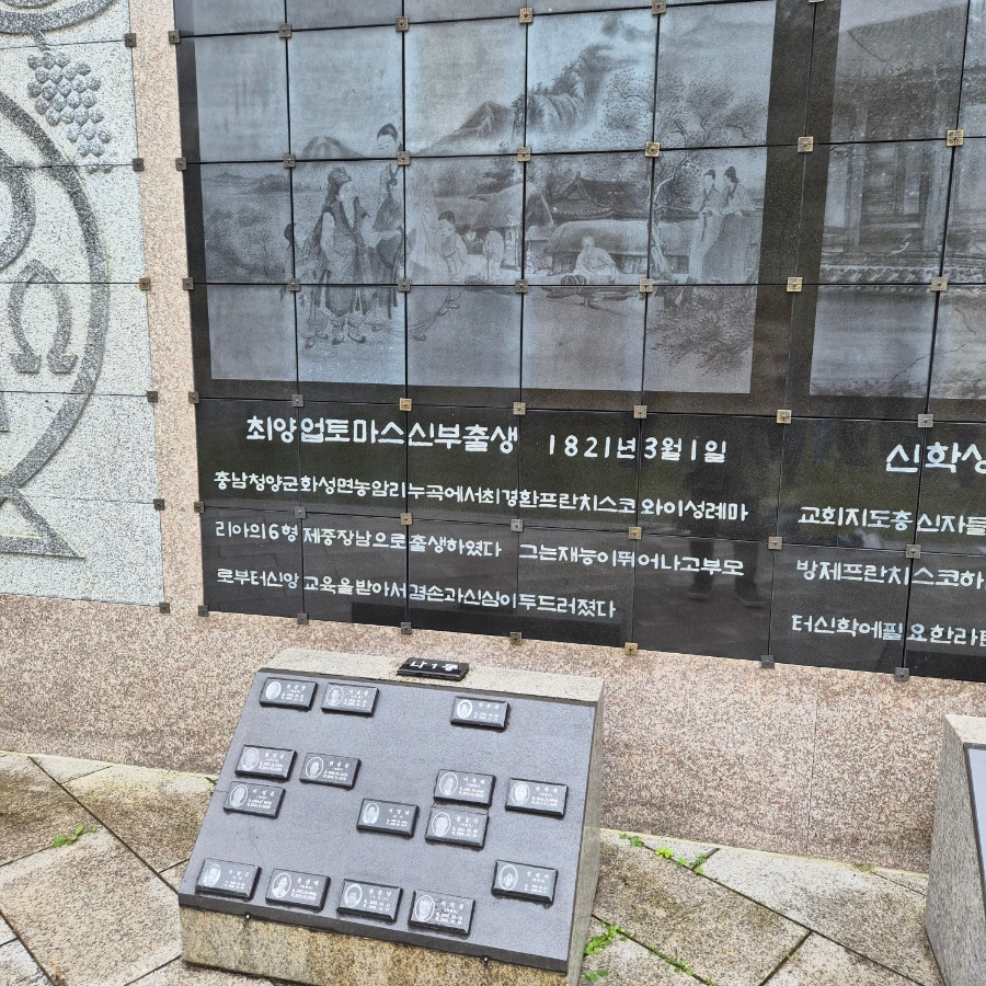 최양업 토마스 신부님의 출생부터의 이야기가 벽화로 이야기가 그려져 있어요.