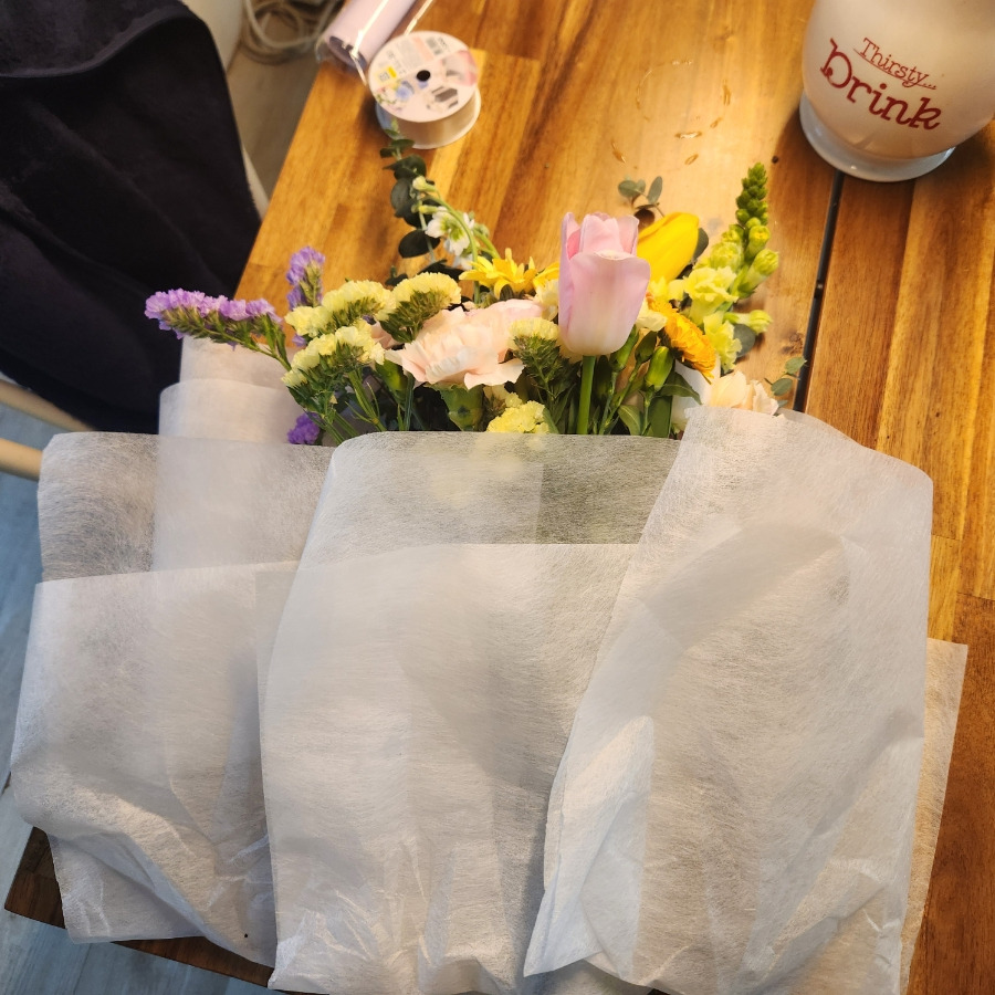 우선 꽃다발을 풍성하게 할 부직포를 잘라요.