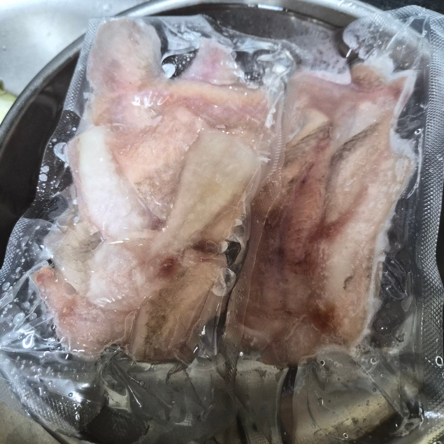 3. 아귀를 해동합니다. 물에 담가 해동해요. 얼른 녹기를 기다립니다.