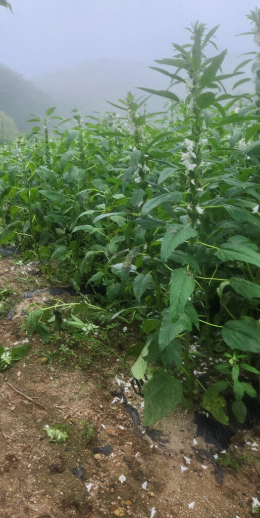 참깨는 순지르기를 통해 참깨 주머니 속의 참깨를 여물게 합니다.