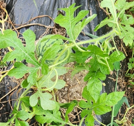 그리고 밭에서 수박을 만났습니다.요건 아마도 망고나? 애플 수박? 위치가 일반 수박의 위치는 아닌데.. ㅎㅎ
