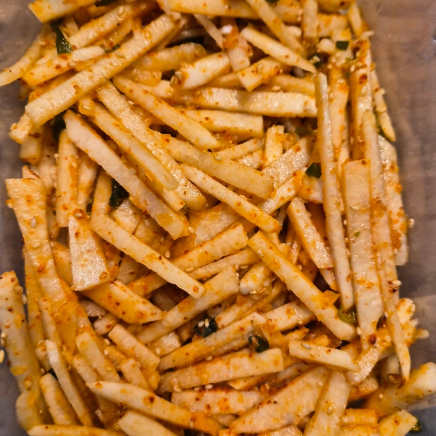 -- 원래 무생채에 식초나 참기름 넣으시는 분들은 더 첨가하셔도 좋을 것 같아요.
