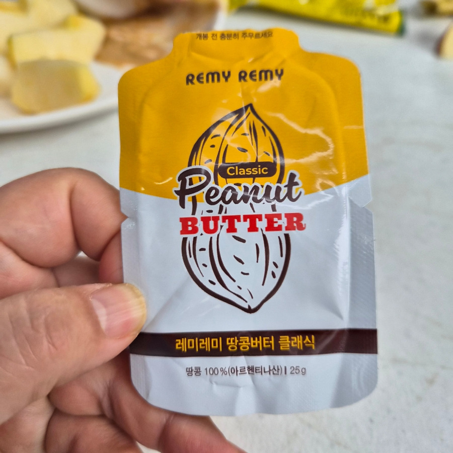 귀요미 땅콩잼을 가지고 오셨어요. 고소한 땅콩잼을 사과와 함께 맛나게 간식으로 즐겼어요.