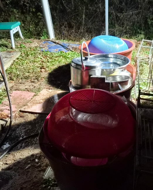 고모부가 만들어 준 보조 수도로 깨끗하게 씻었습니다.