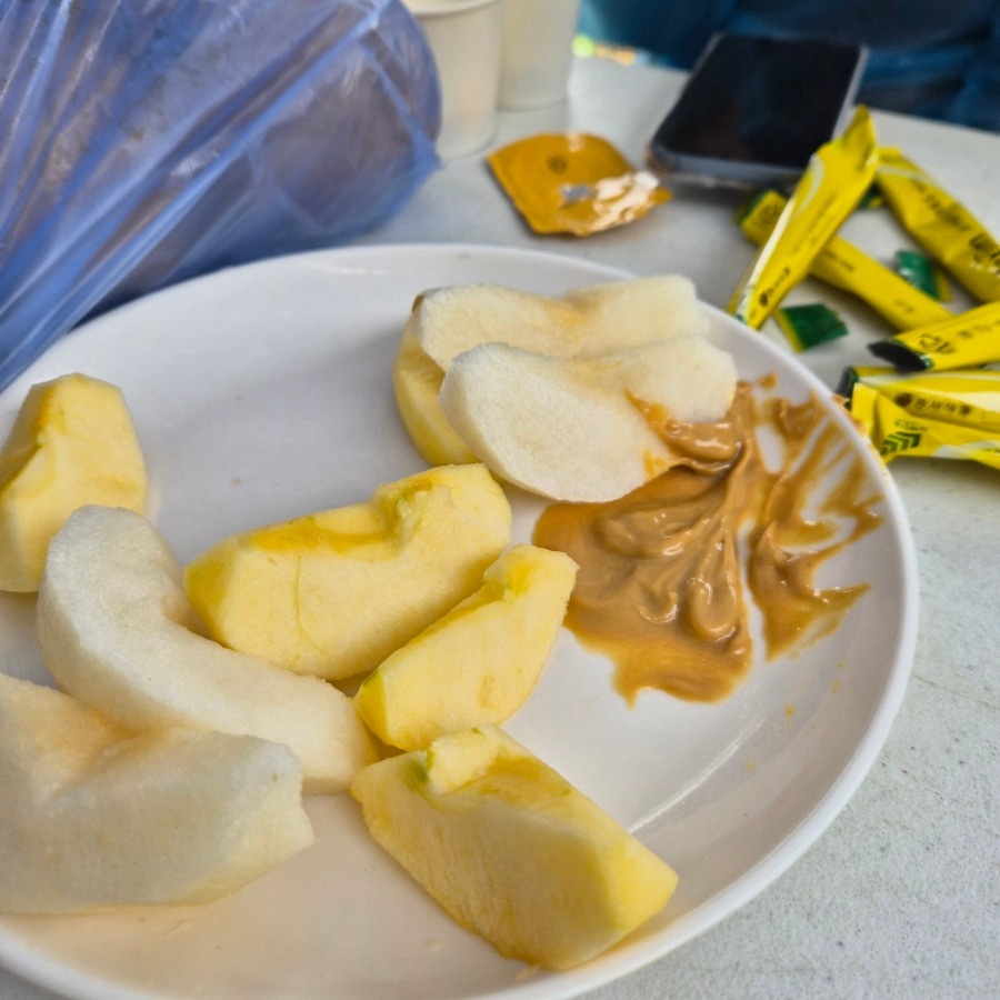 귀요미 땅콩잼을 가지고 오셨어요. 고소한 땅콩잼을 사과와 함께 맛나게 간식으로 즐겼어요.
