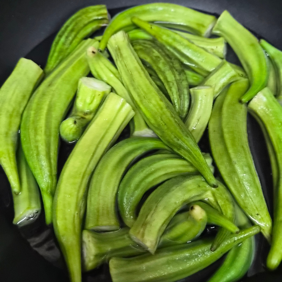 오크라로 튀김도 하고요. 전도 부치고요. 오크라로 무침도 가능하고요. 고추처럼 사용하면 좋아요. 일본요리에 많이 보이는 오크라에요.