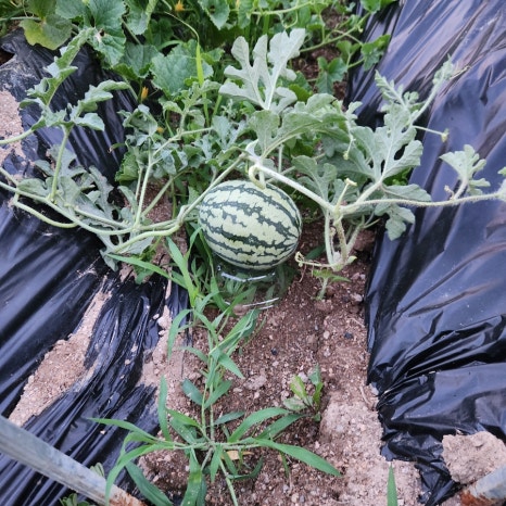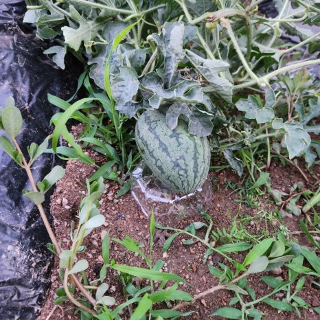 참고로 요즘 시중에 수박, 참외, 멜론 등의 과일 받침대를 시중에서 판매해요. 과일의 스트레스를 줄여주고 통기성이 좋아 고품질의 과일을 생산할 수 있다는 이야기로 판매하고 있는 받침대~ 그간 키워보니 받침이 없으면 땅에서 쉽게 물러지기도 하고요. 그리고 색도 고르게 내기도 어렵더라고요.