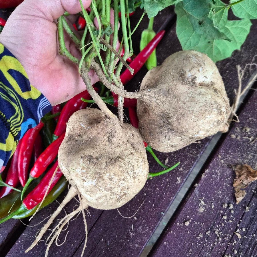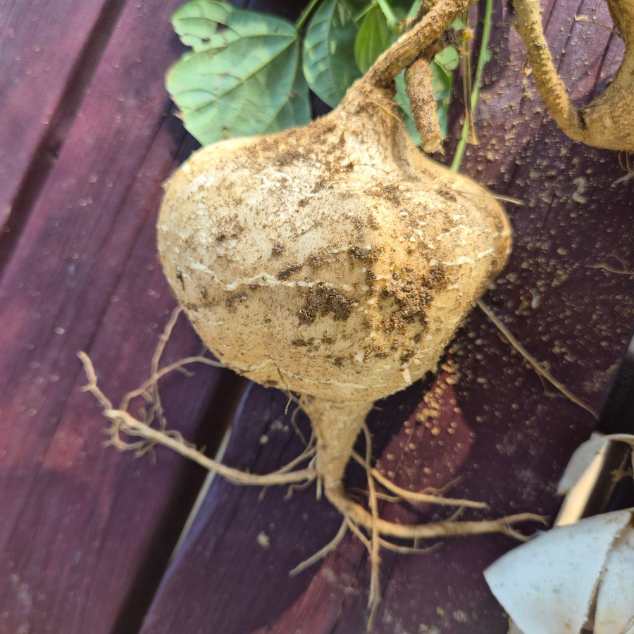 고구마 덩굴처럼 뻗어나가는 줄기 아래 요렇게 크고 있었어요. 기특한 히카마입니다.
