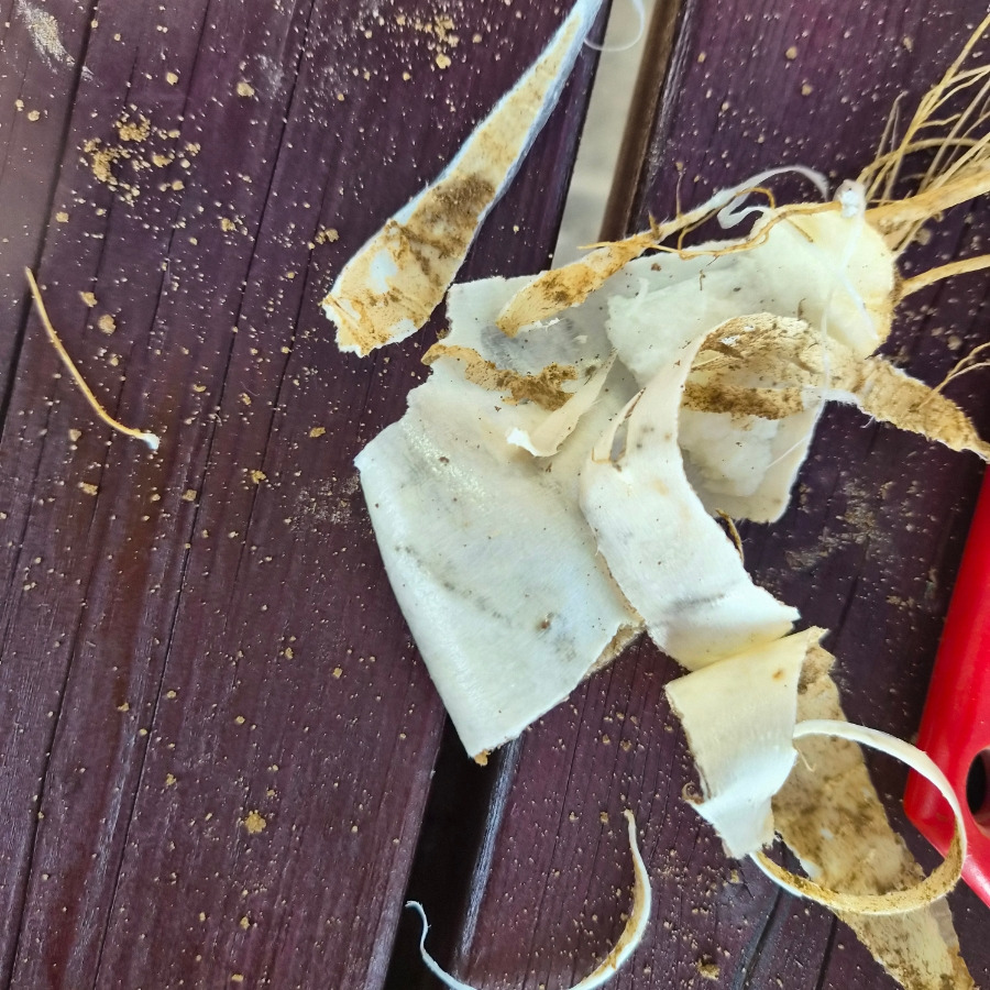 껍질은 귤껍질 벗기듯이 위에서 아래로 벗깁니다. 껍질을 요렇게 훌러덩 잡아당기면 쉽게 벗겨지는 히카마에요. 손질도 쉬워요.