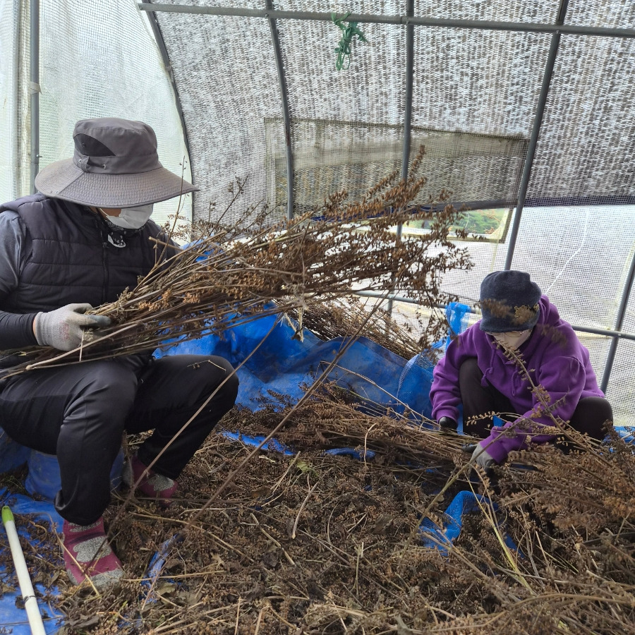 남은 들깨는 없는지 확인하는 인테리어 업자 농부님
