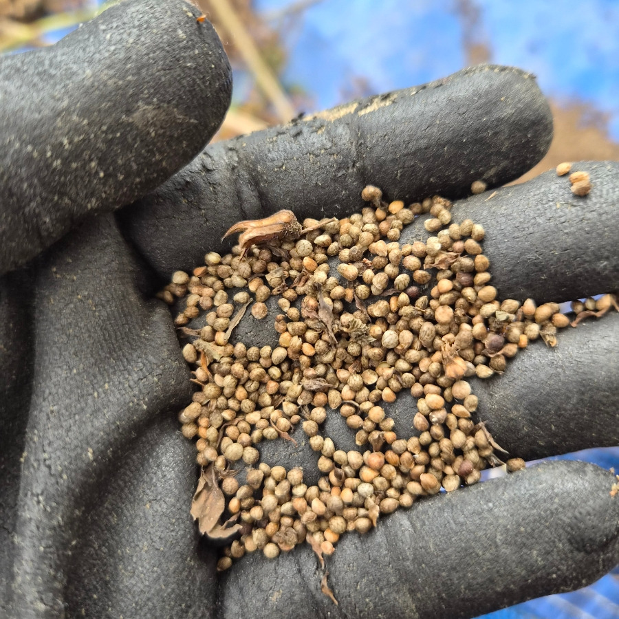 들깨 망 아래로 흘러 들어간 들깨들이 귀여워요.