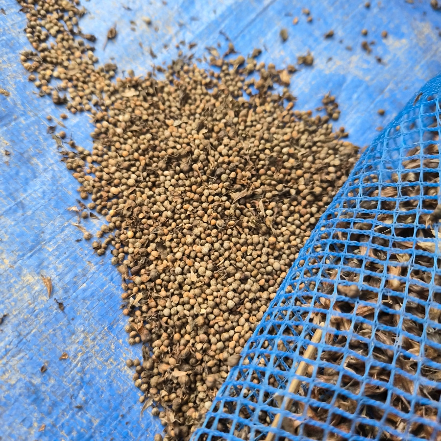 들깨 망 아래로 흘러 들어간 들깨들이 귀여워요.