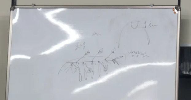 고구마 줄기 마디마다 덩이뿌리(고구마)가 달려요.