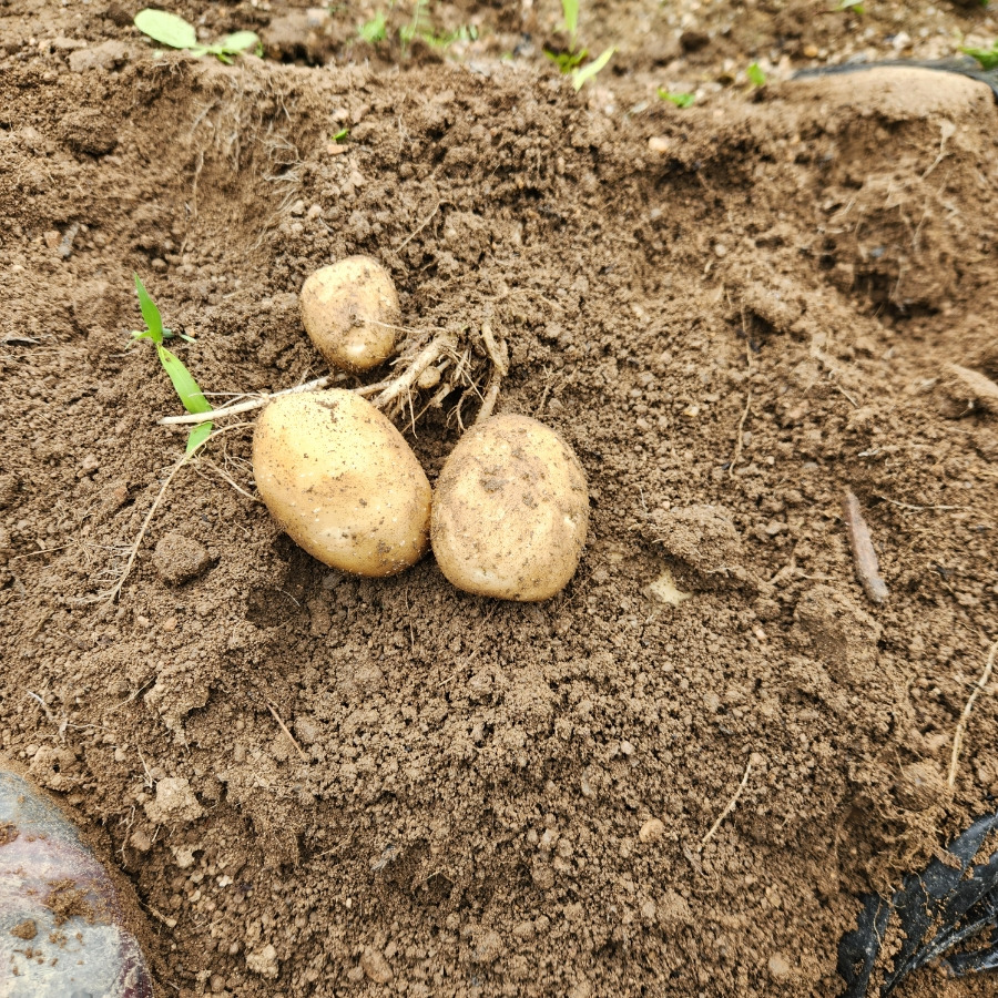 올해 두백 감자 10kg을 쪼개서 심었고요. 쪼개 심은 감자에 대략 3-6개씩 달렸지요.