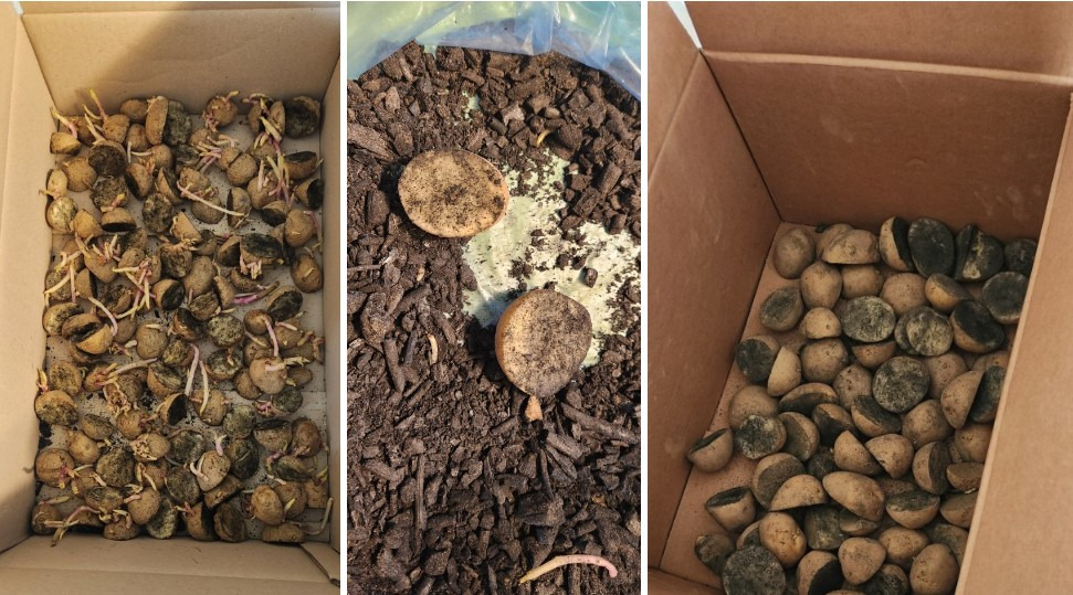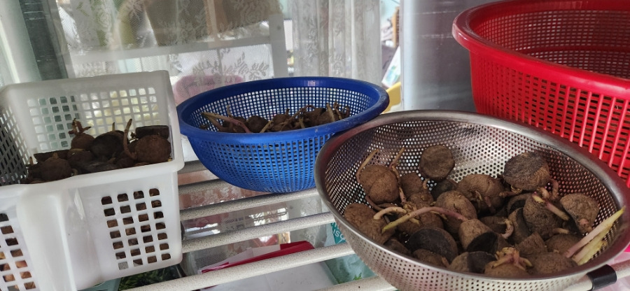 씨감자를 잘라서 생긴 절단된 면이 치유되도록 통풍이 잘 되는 곳에 둡니다.