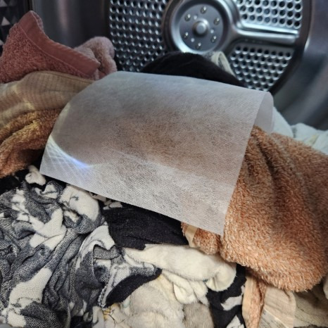 빨래와 함께 드라이 시트도 돌아 당깁니다.