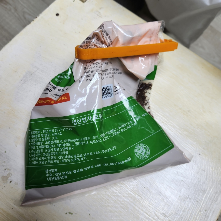상토도 쓰러지면 참사가 벌어집니다. 꼭~ 집게로 집어 주세요. 집게도 다이소 구매~