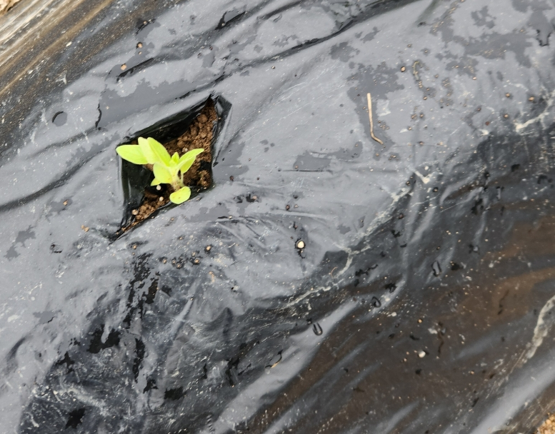 모종으로 키우기 힘들었던 참깨를 하우스에서 꺼내 밭에 옮겨 심었습니다.