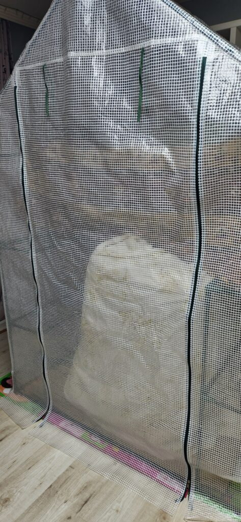 착착~ 위로 올리고 이불과 커튼 장판 그리고 열선까지 총동원을 합니다. 춥지 말라고 25도 유지합니다. 온도계로 온도를 확인하면서 키웁니다. 3-4일 정도 요렇게 모실 예정입니다. 잘 키워서 고소한 참깨를 미쁨드림에서 판매할 예정입니다.