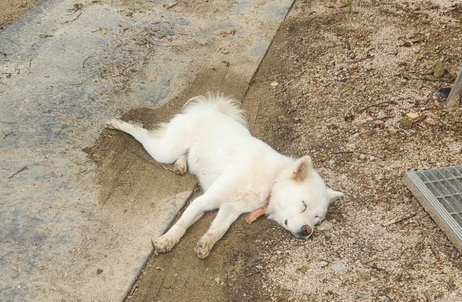 흰둥이~늘어지게 주무시는 강아지 흰둥이입니다.