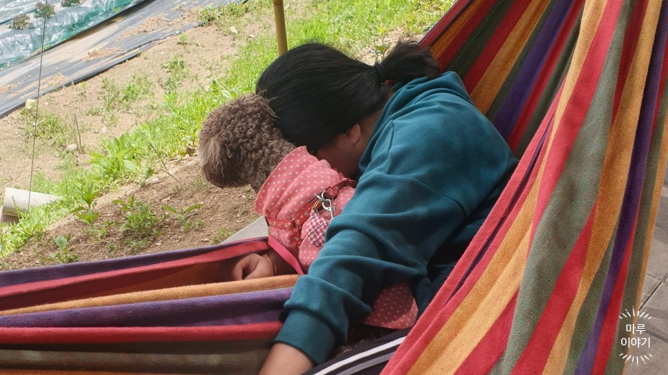 엄마가 새참을 만드는 동안 1호와 달달한 마루 씨는 오늘도 해먹을 탑니다.