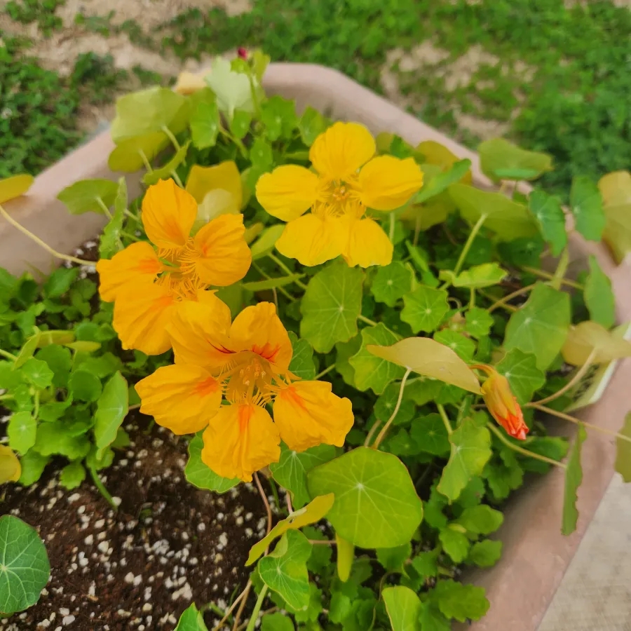 노오란 한련화가 이쁘게 피었어요.