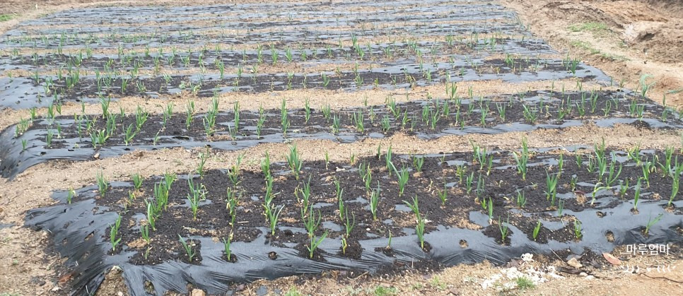 겨울을 이기고 나온 마늘과 양파도 많이 컸어요. 양파는 죽은 아이가 더 많네요. 빨간 양파도 심었는데 죽은 양파가 더 많네요. 양파 비닐 구멍 사이로 쑥이 쏘옥 올라옵니다.