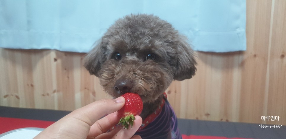 마루도 비가 와서 농막 안에서 지낸 시간이 더 많네요. 잠깐씩 나가 산책하고 배변 활동하고 아이들과 농막 안에서 놀았어요. 미용실 다녀온 후 점점 자연스러워지고 있는 달달한 마루 씨의 헤어 스타일~비가 와서 농막 안에서 빈둥거리는 왕자님 입니다. 딸기 먹고 있는 왕자님.