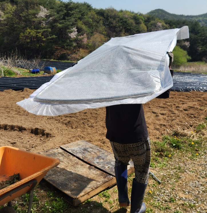 오후 시원한 시간에 비닐하우스를 설치합니다.