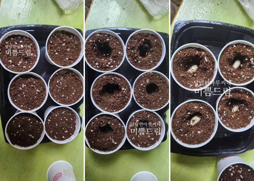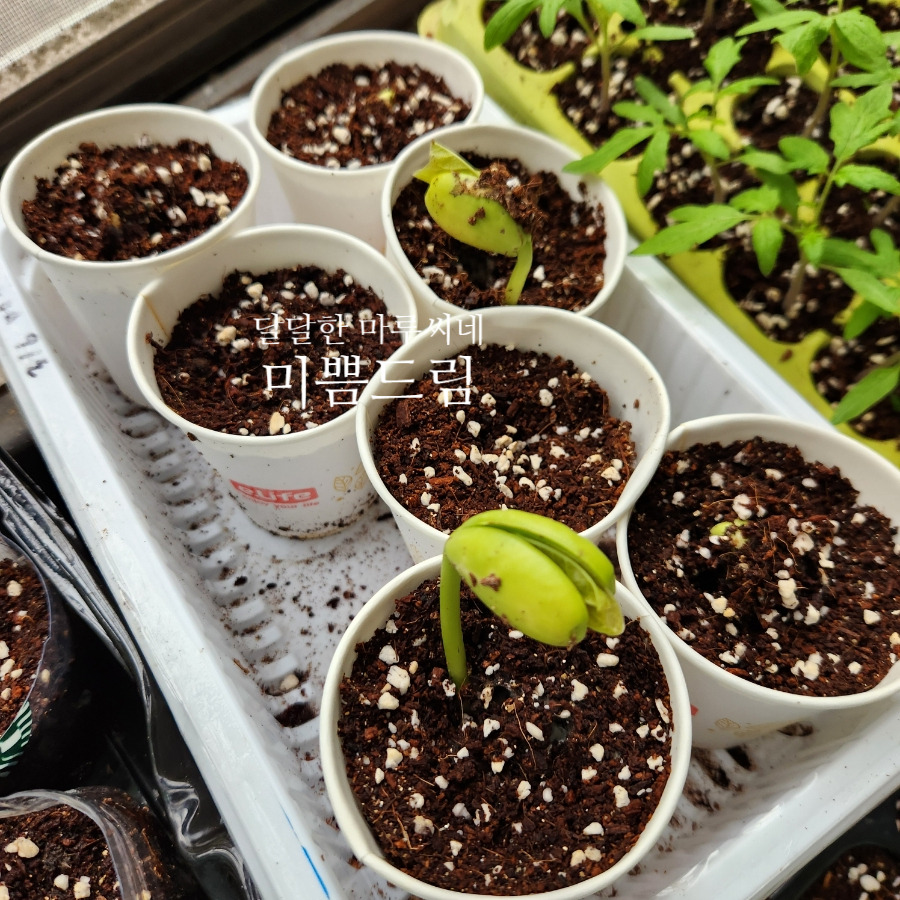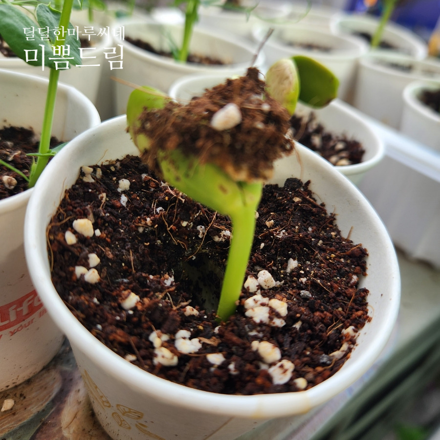 물 불림을 하고 심은 것이라 빠르게 싹이 올라옵니다.