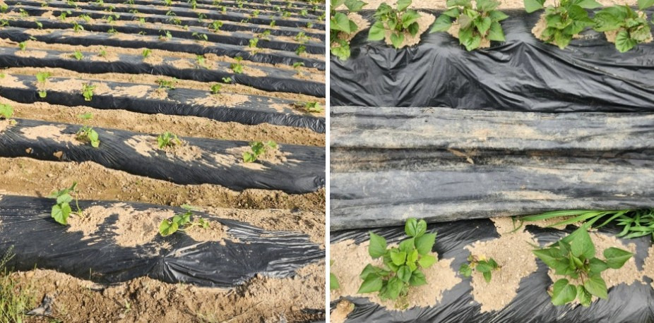 잡초 매트야 ~ 고구마를 가을까지 잘 부탁한데이~~