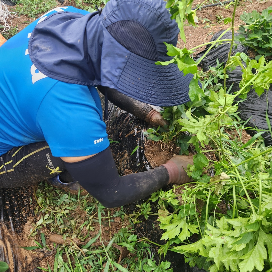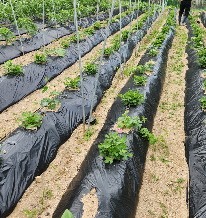 자방병이 땅속으로 잘 들어갈 수 있도록 비닐 멀칭을 찢어 줍니다.