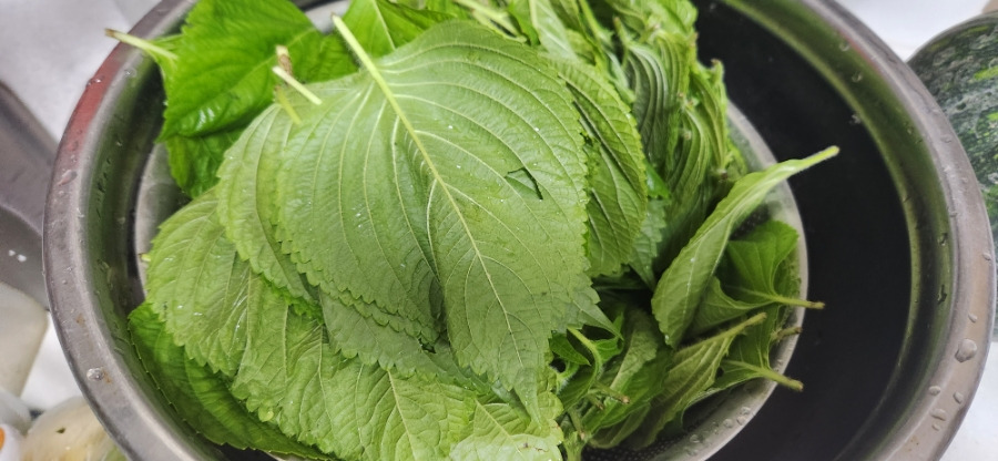 - 깻잎을 깨끗하게 손질하여 물에 씻어 물기를 제거한다.(앞뒤를 확인하면서 깨끗하게 씻는다.)