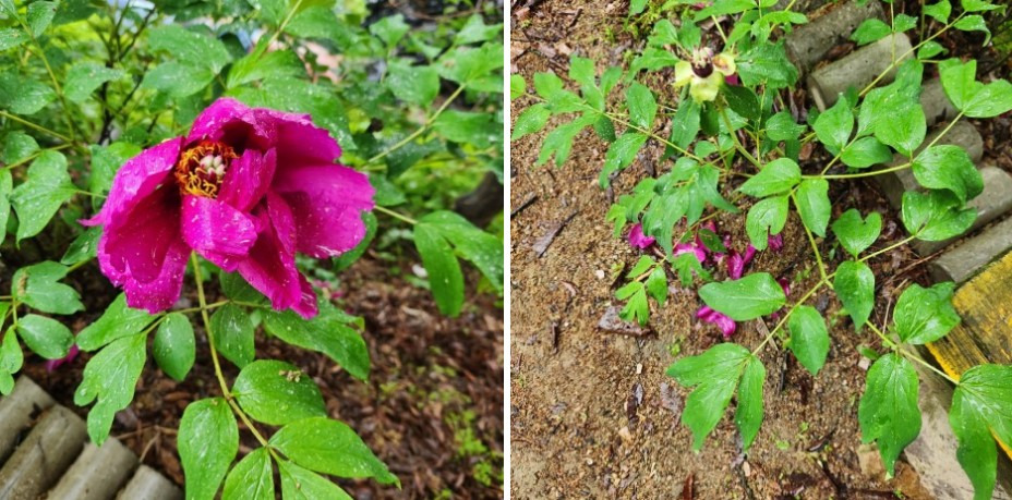 그래서 목단은 줄기가 준비되어 있는 상태로 잎과 꽃봉오리가 빠르게 나와요. 그리고 그 후 작약이 꽃을 피워냅니다. 목단(모란)은 4월 말부터 시작하고요. 작약(함박꽃은) 5월 중 하순에 만개한다고 해요.